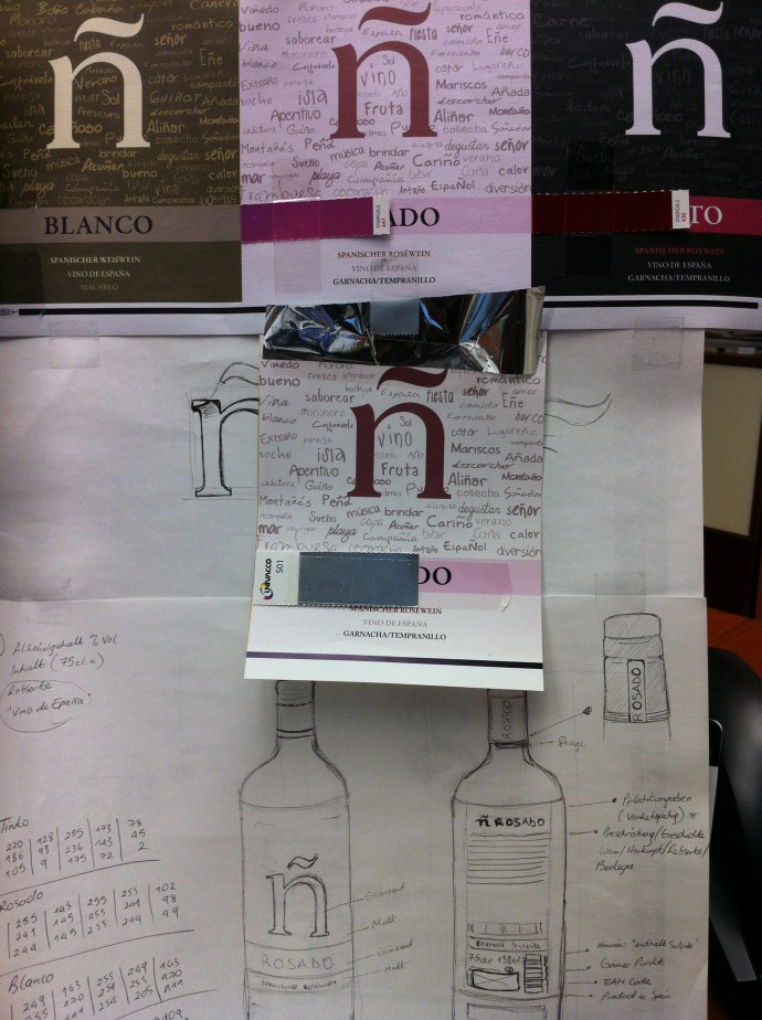 I excecuted the task from concept development to production process staying in touch with the producer of the wine in Spain. My concept was to design a product that the customer can interact with. On the labels there are different spanish vocabularies that relate to wine .